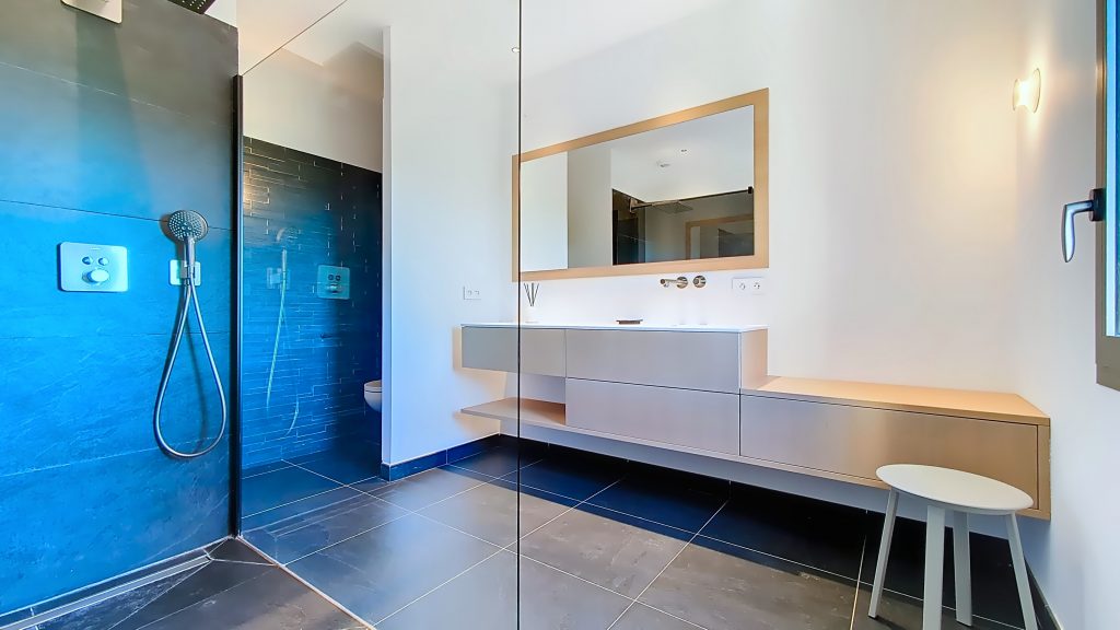 Chaque chambre de la villa dispose de sa propre salle de bain privative, alliant confort, élégance et modernité. Spacieuses et lumineuses, elles offrent tout le nécessaire pour des moments de détente en toute intimité.